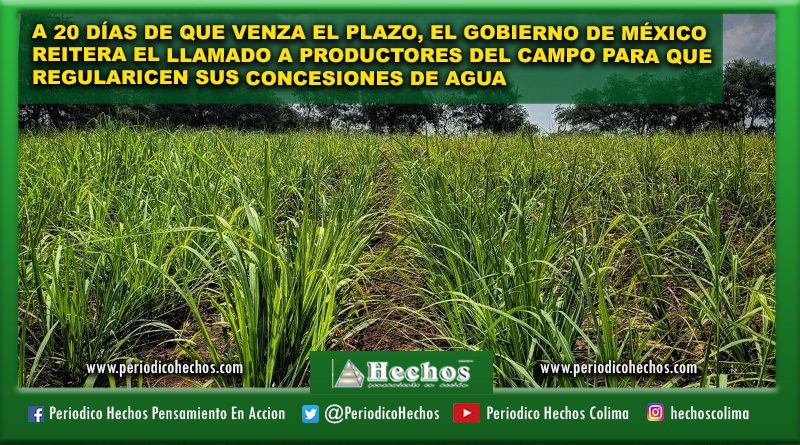 El Gobierno de México, mediante la Dirección Local Colima de la Comisión Nacional del Agua (Conagua), reitera el llamado a las y los pequeños productores del campo que cuentan con concesiones de aguas nacionales vencidas entre 2017 y 2025 para que regularicen sus títulos, en apego al Decreto de Facilidades Administrativas anunciado en octubre de 2025 y que vence el 28 de abril próximo.