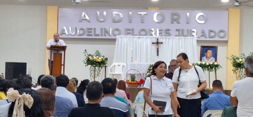 A las 16:30 horas fue el corte de listón y bendición por la remodelación del auditorio “Audelino Flores Jurado”.